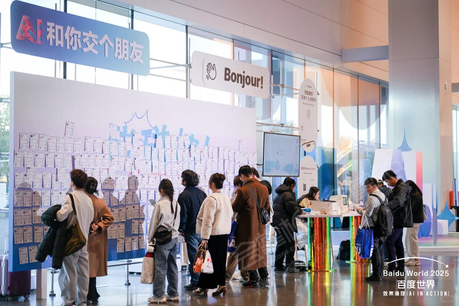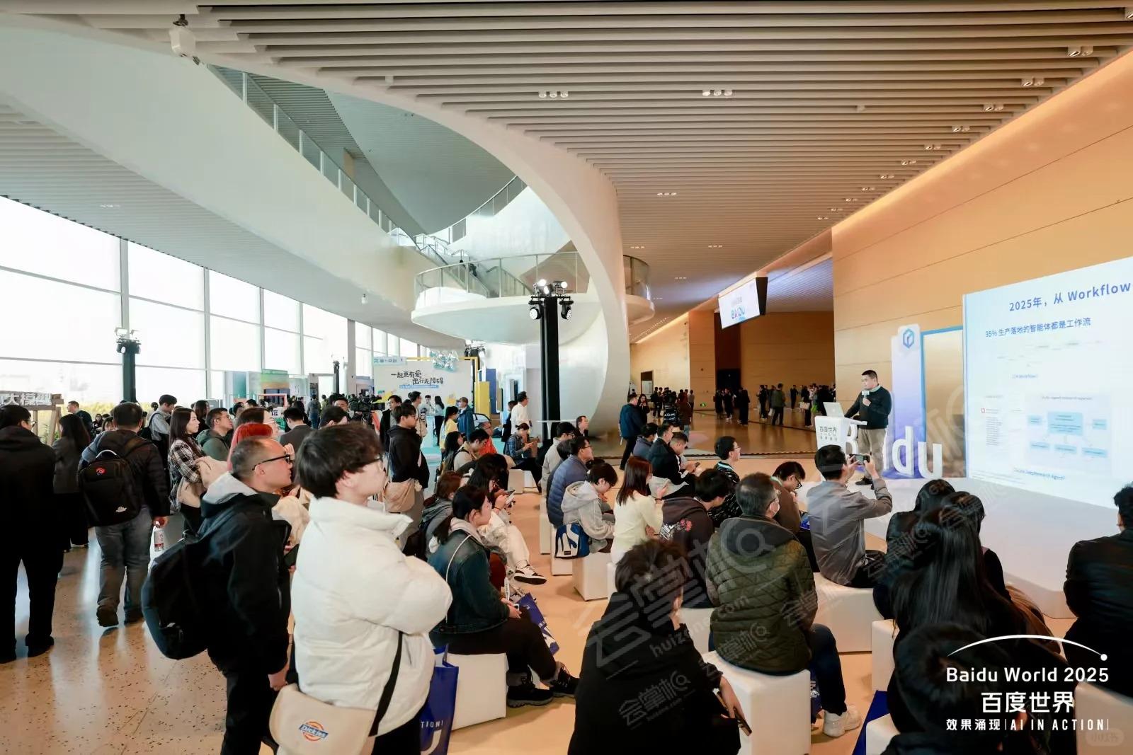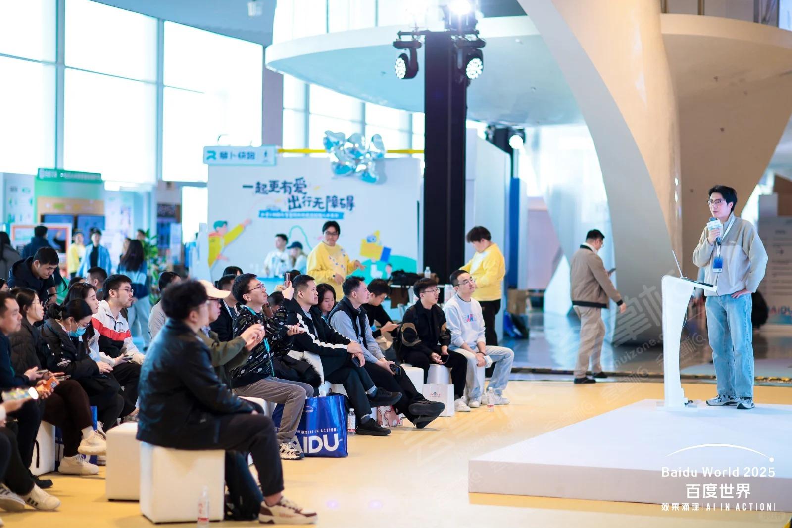 现场整体视觉以深邃蓝色为主调,营造出沉浸式的未来科技氛围——从芯片到应用,处处彰显百度硬核技术实力。置身其中,AI浪潮扑面而来,科技触手可及;更有专业技术人员现场答疑,高效获取前沿知识。未来已来,心潮澎湃,尽在百度世界大会2025!
