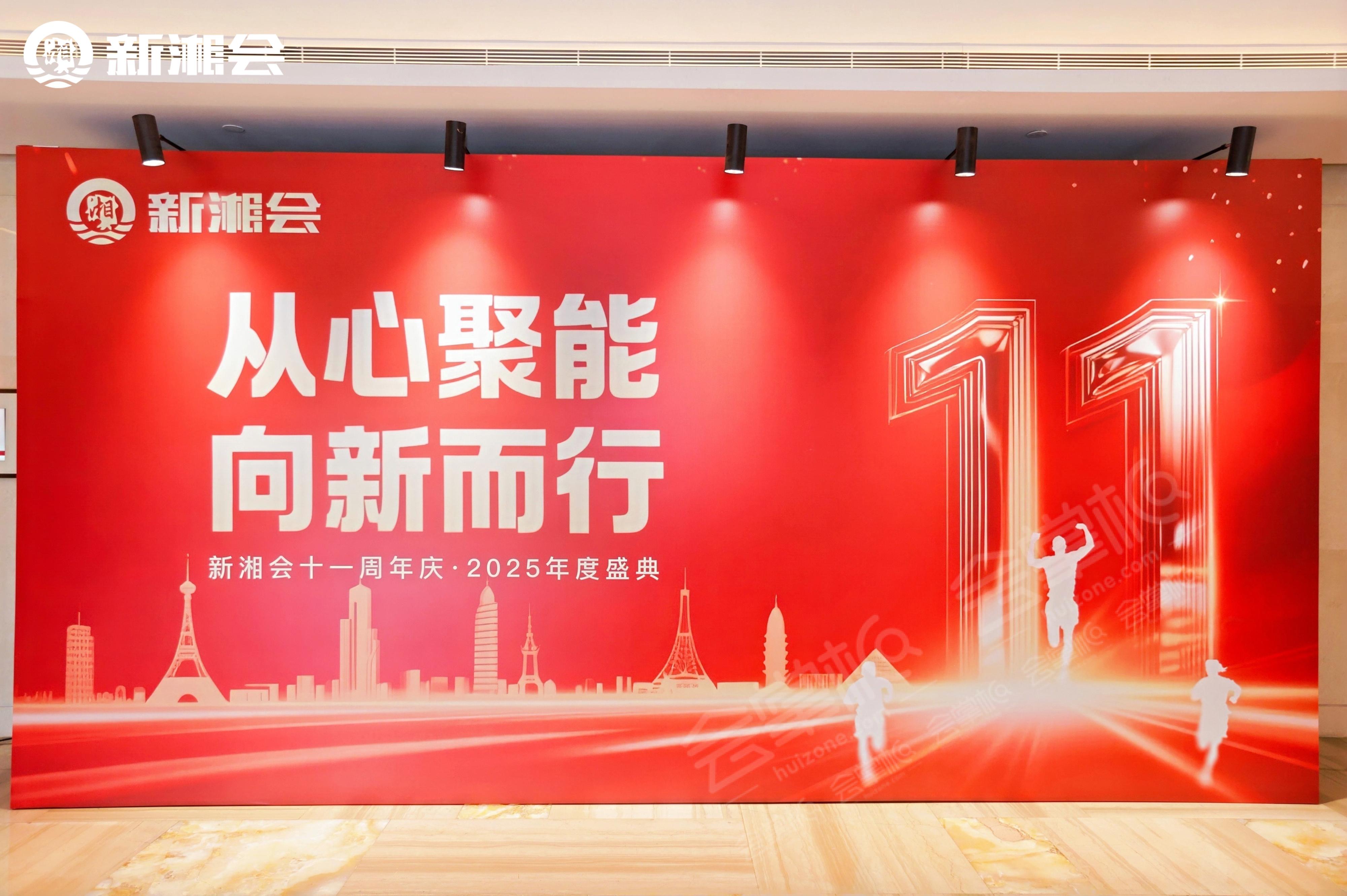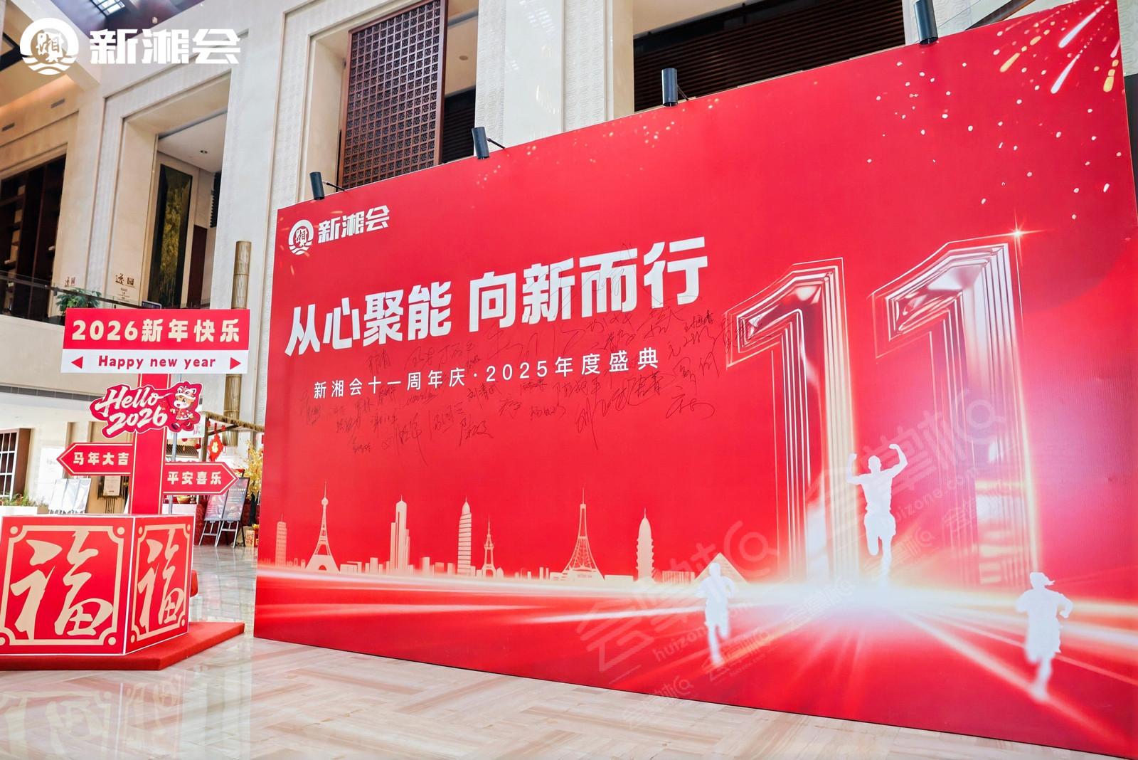 2026年1月9日,新湘会十一周年庆典在杭州西溪宾馆西溪厅隆重举行,主题为“从心聚能,向新而行”。现场以热烈的红色与温暖的黄色为主色调,既呼应了新春将至的喜庆氛围,又象征着湘商精神的热忱与希望。活动现场高朋满座,嘉宾们齐聚一堂,回顾十一年来携手同行的点滴,共话未来发展新机遇。